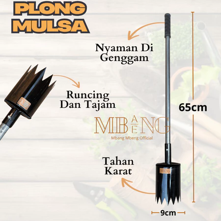 Dengan diameter lubang 9 cm, plong ini ideal digunakan untuk berbagai jenis tanaman hortikultura seperti cabai, tomat, terong, dan lainnya. Panjang total 65 cm membuatnya ergonomis dan nyaman digunakan tanpa harus terlalu membungkuk, mengurangi kelelahan saat bekerja.